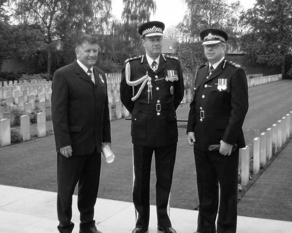 Commissioner Sir John Stephens, DAC John Grieve CBE and Jon Nicholls at the Arras Memorial to the Missing, May 2002